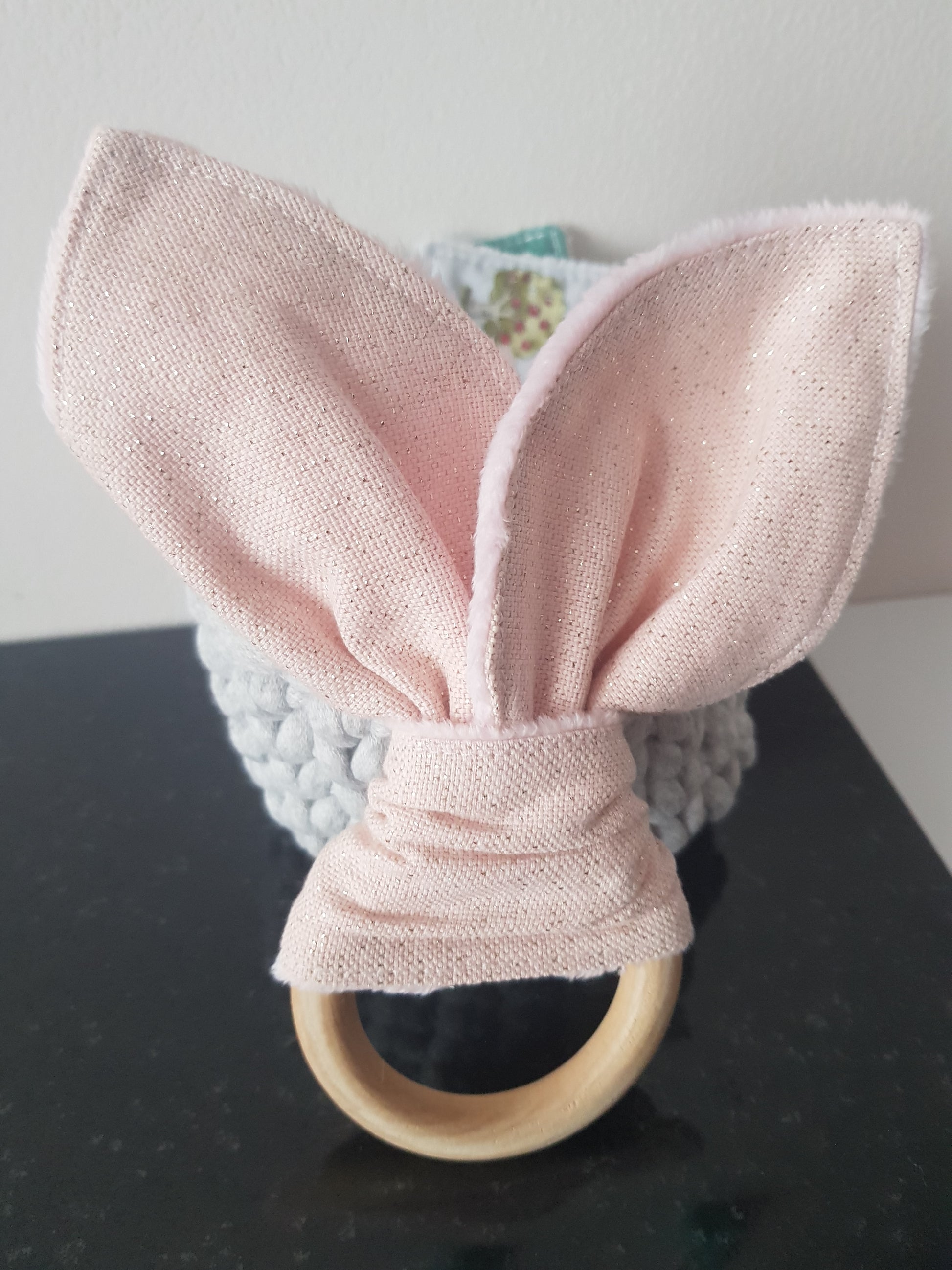 Joli anneau de dentition oreilles de lapins pour soulager les gencives de nos princesses et princes.