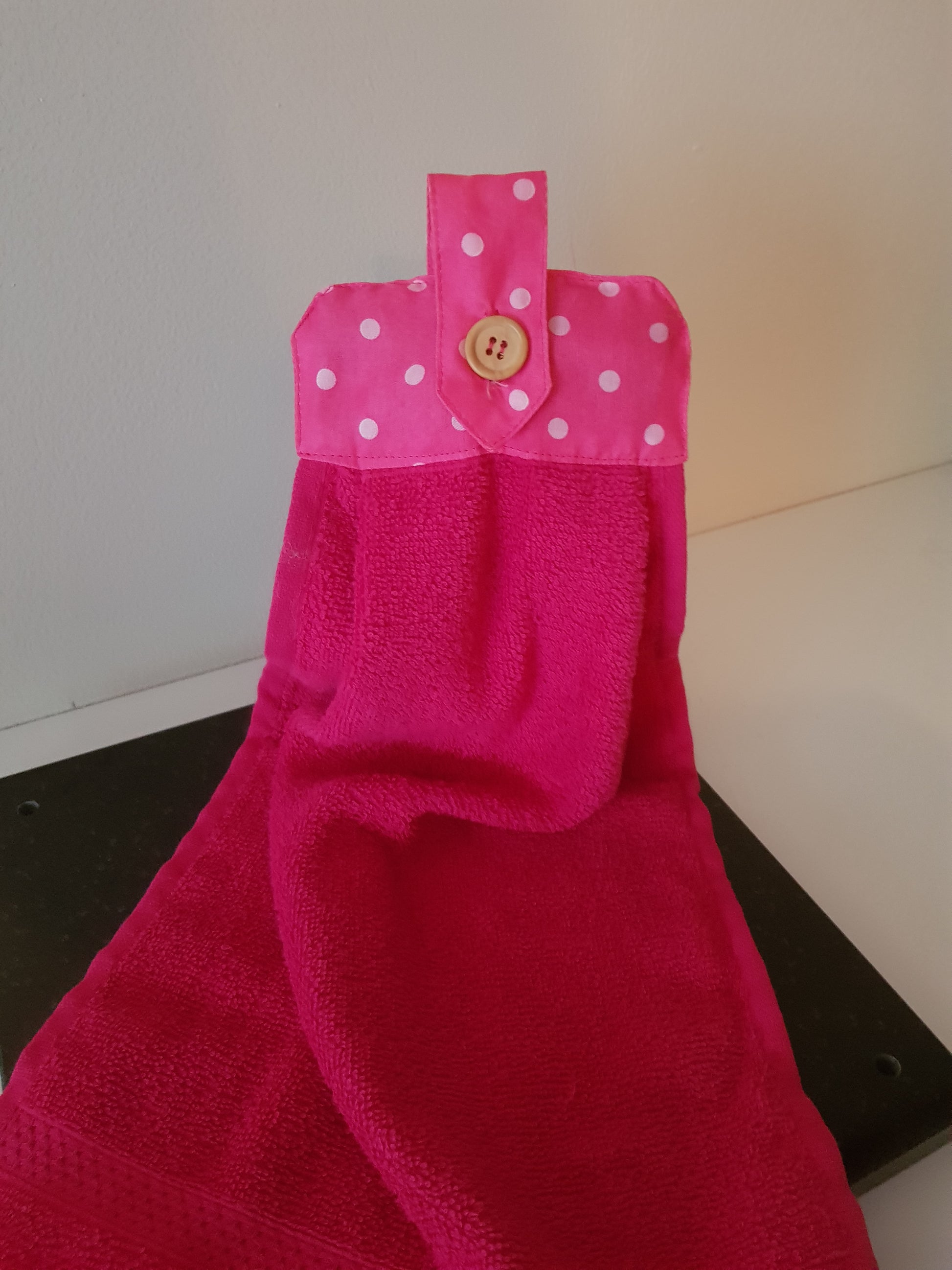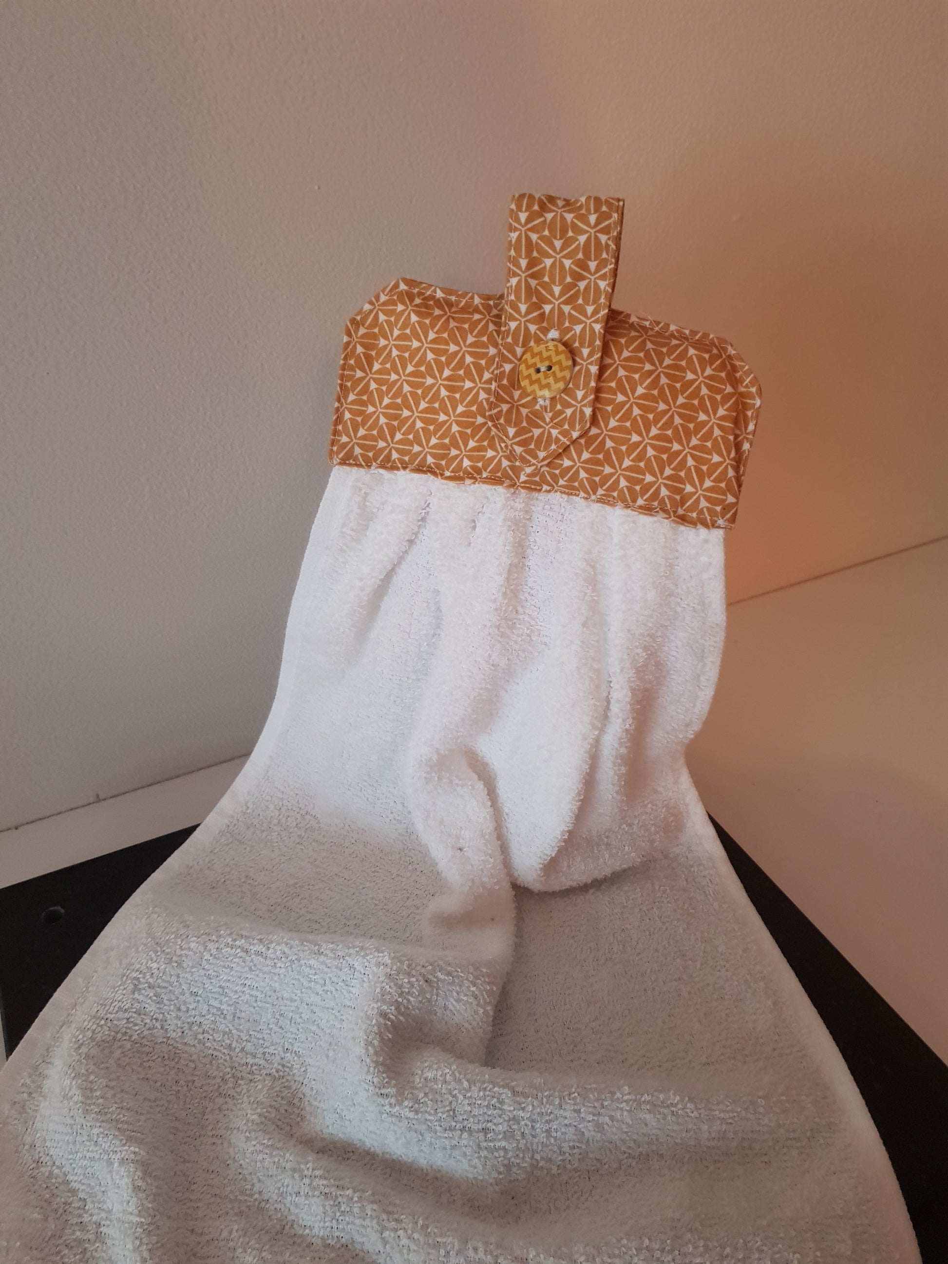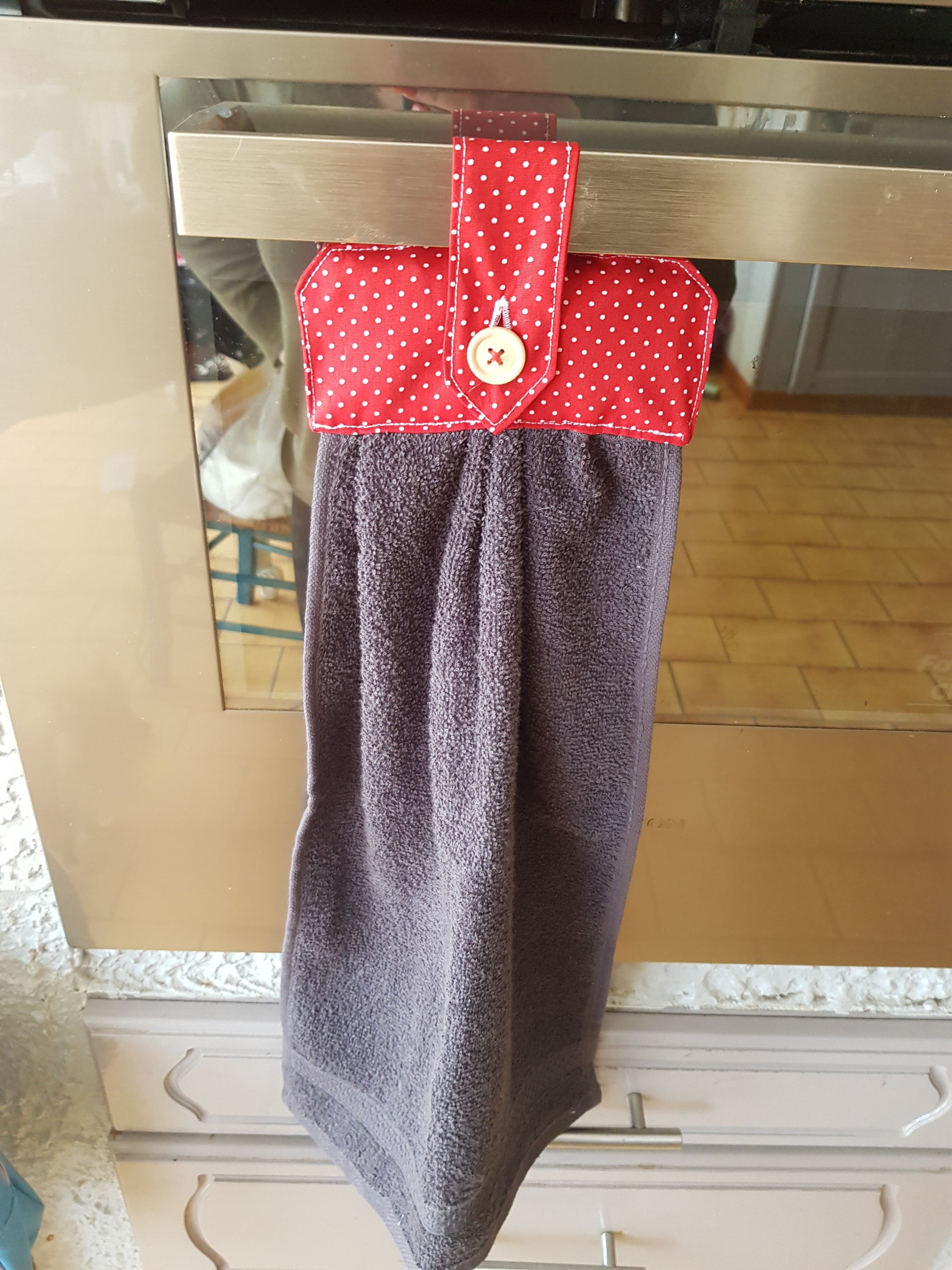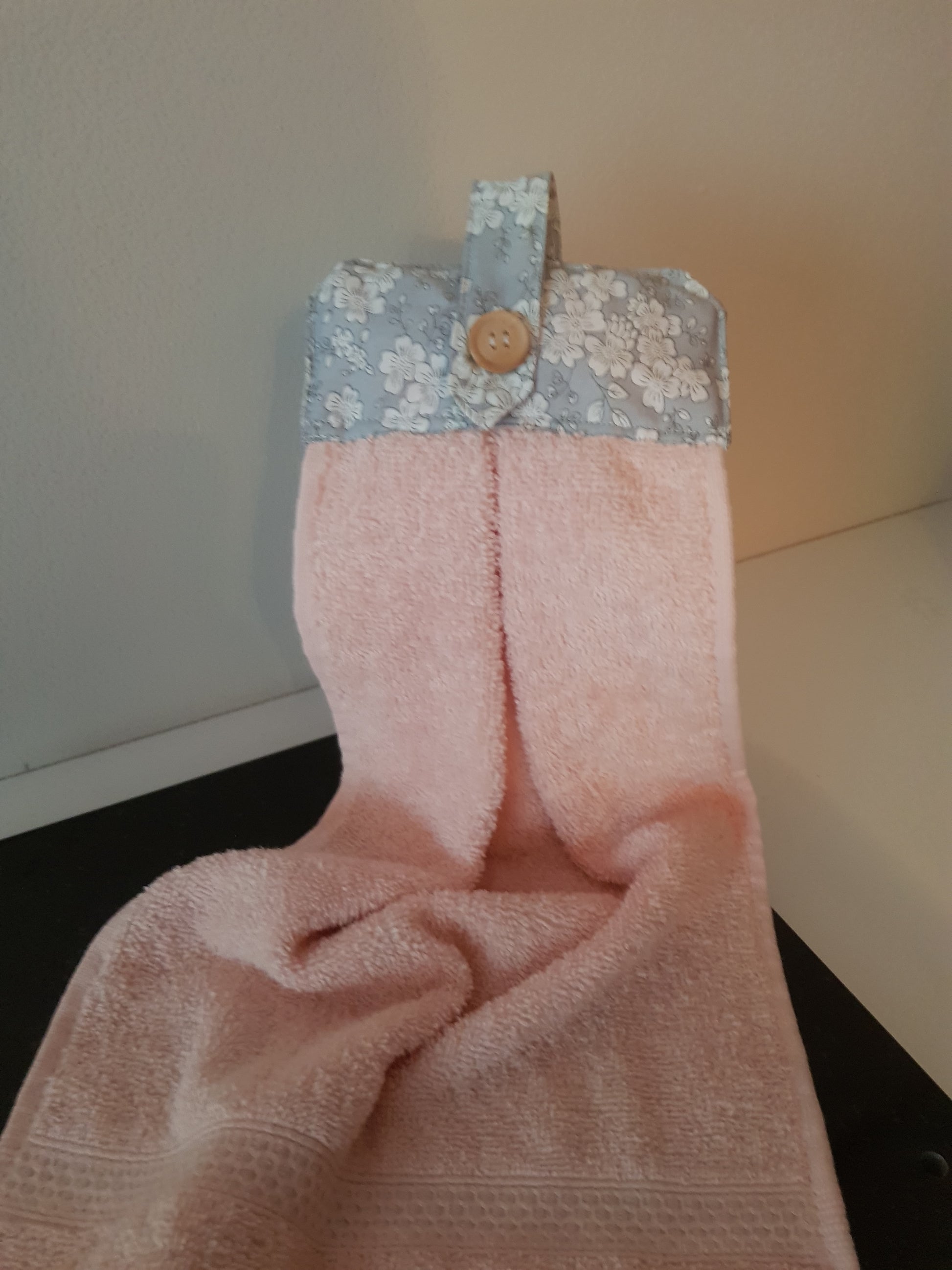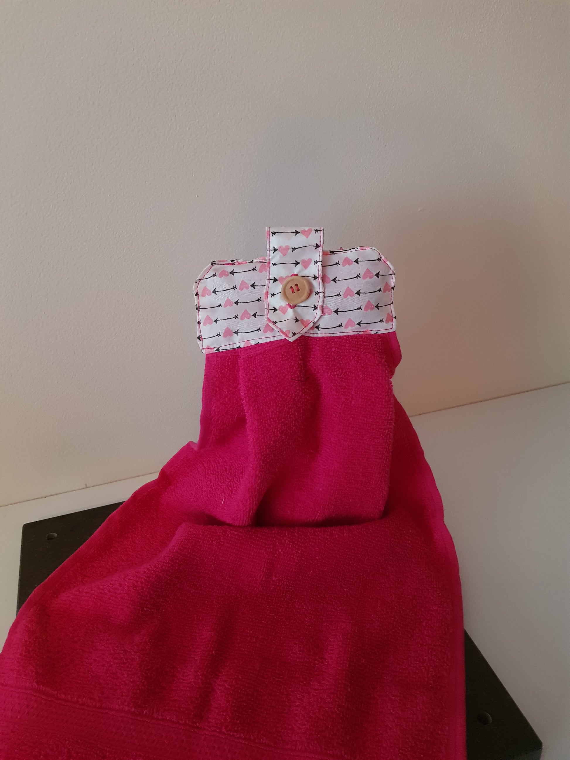 Un joli essuis main qui peut s'accrocher partout, à la poignée d'une porte, à la barre inox de votre cuisine le porte serviette de votre salle de bain et bien d'autre endroit encore.