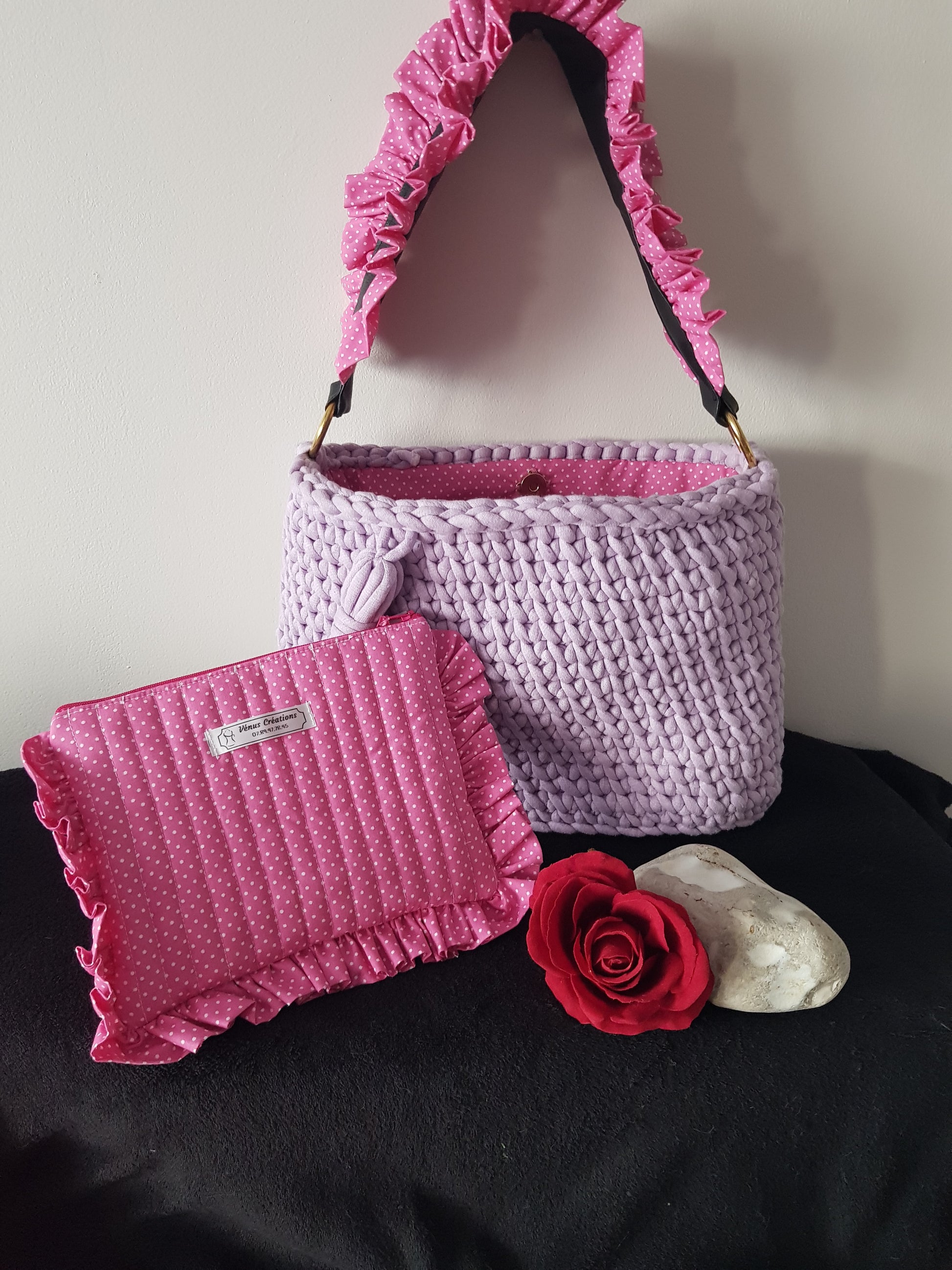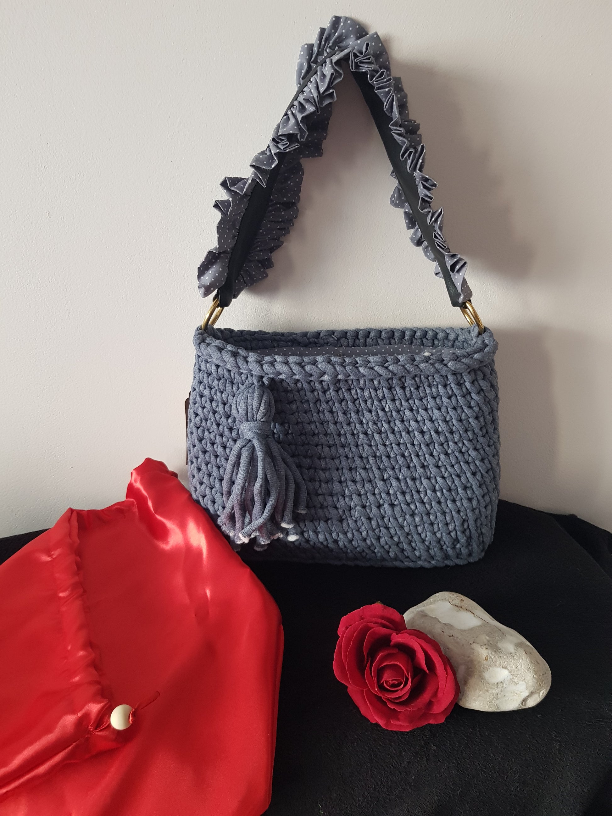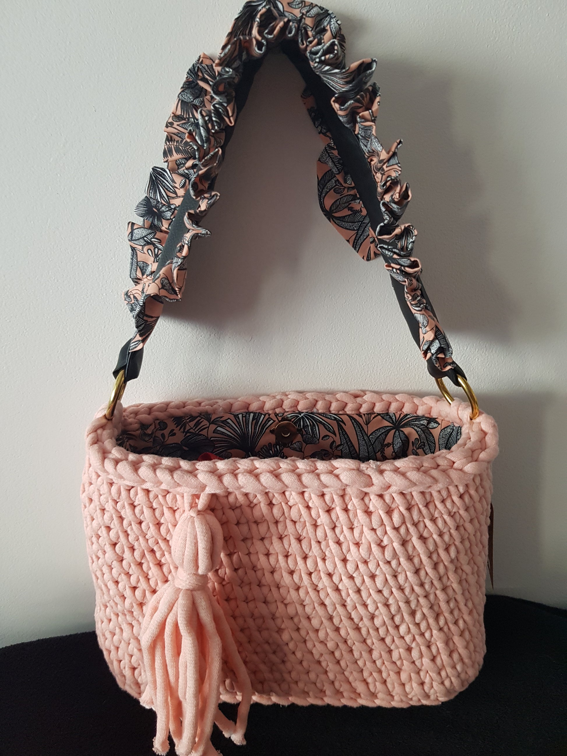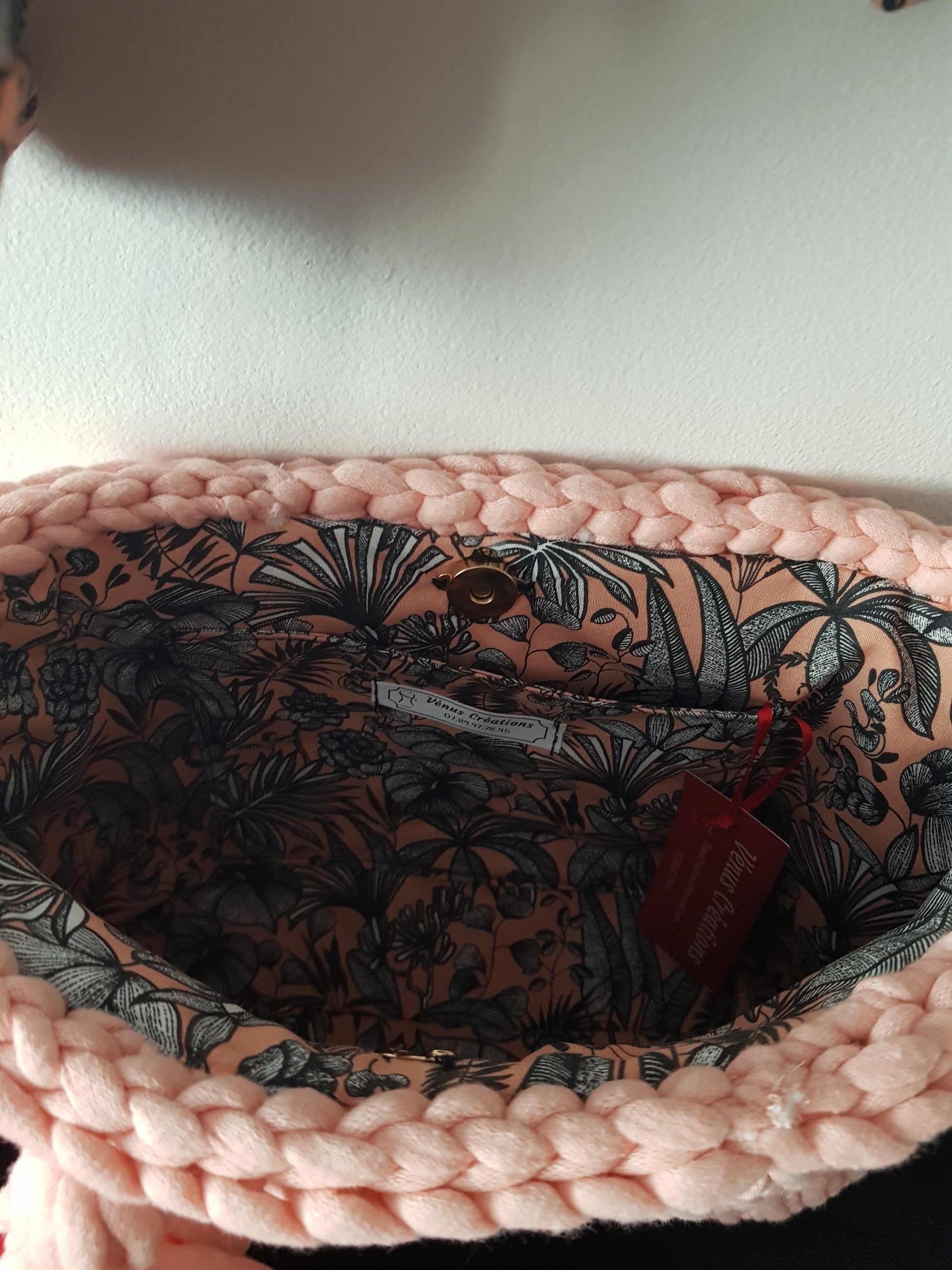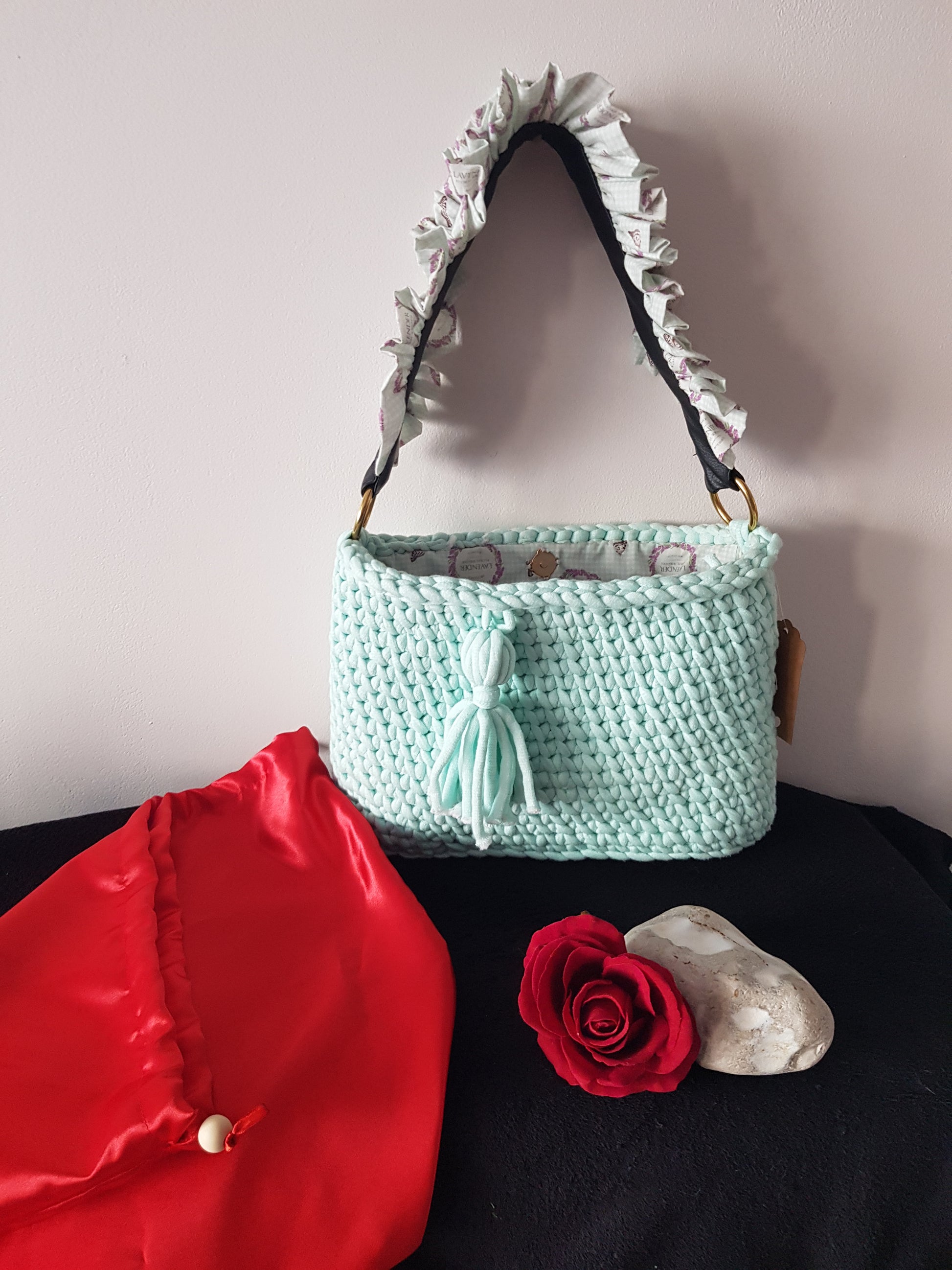 Magnifique sac à main réalisé entièrement de façon artisanale. Le sac Frou-frou est agrémenté d'une anse avec un Trou assortis  à la partie intérieure du sac à main. Ainsi la doublure devient à elle seule une pièce maitresse.